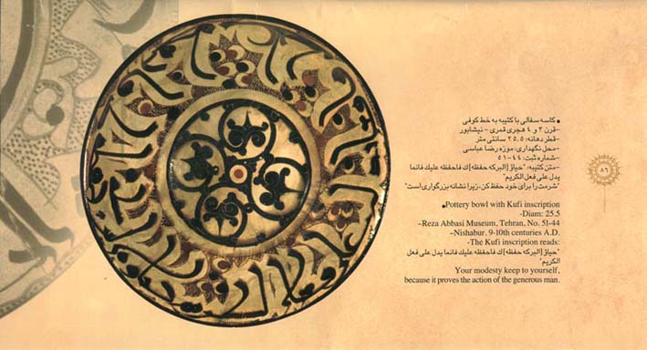 Recognizing the issues raised by the flawed methodology commonly applied in the study of Kufic script, Kufic Encyclopedia makes the important innovation of examining the script by medium. Clearly, different techniques must be applied to produce the script in manuscript, on stone, coin, ceramic, and in metalwork. The varying purposes connected with these different media are also taken into account, as these too have an impact on the visual appearance of the script and its syntax. Altogether, then, considering the Kufic script in this way restores meaning to its stylistic development, enabling today’s practioners to move away from pure reproduction and arbitrary decoration and instead to work knowledgeably and to make appropriate creative developments.